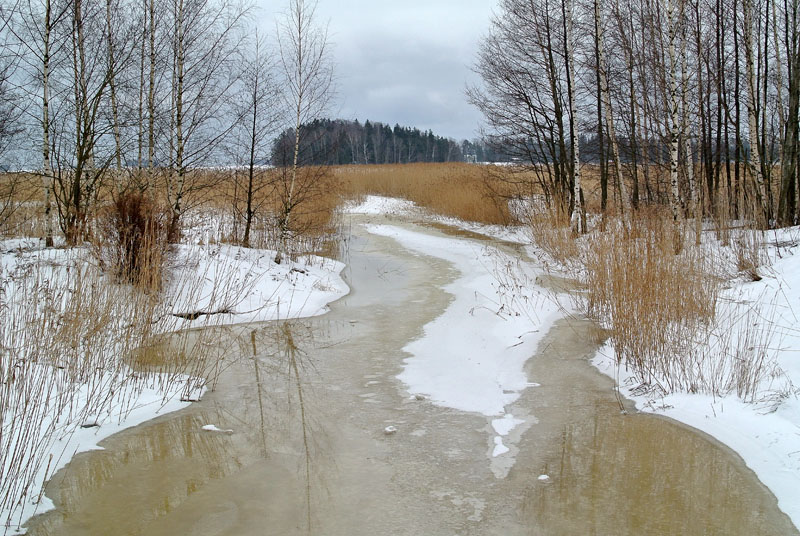 Viikolla viisi suojasää ja sade sai kuitenkin sen aikaiseksi, että purojen jään päälle tuli vesikerros. Pikkutikka hakkasi – ei puuta , vaan pujon ja takiasten varsia. Kävi systemaattisesti läpi talven törrötäjiä ja aina, kun vaihtoi vartta kuului merkki ”kiik”. Viikolla 6 talven tuntu palasi. Samaten elämää alkoi näkymään: vihervarpusia, tiaisia, pajusirkkuja, mustarastaita ja saalistava kanahaukka.