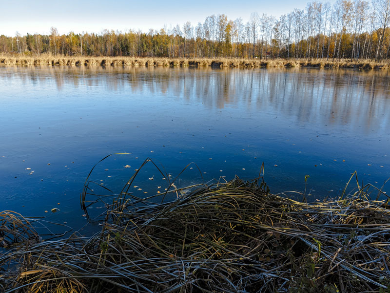 Lokakuu toi normaalia komeamman ruskan. Tuuleton sää edesauttoi lehtien pysymistä puussa ja kuvajaisia altaan pinnalla. Satamassa laskettiin siianpoikasia mereen siikakannan elvyttämiseksi. Muutama pakkayö teki kauniin kuuran niityille ja sai altaat jäähän.
