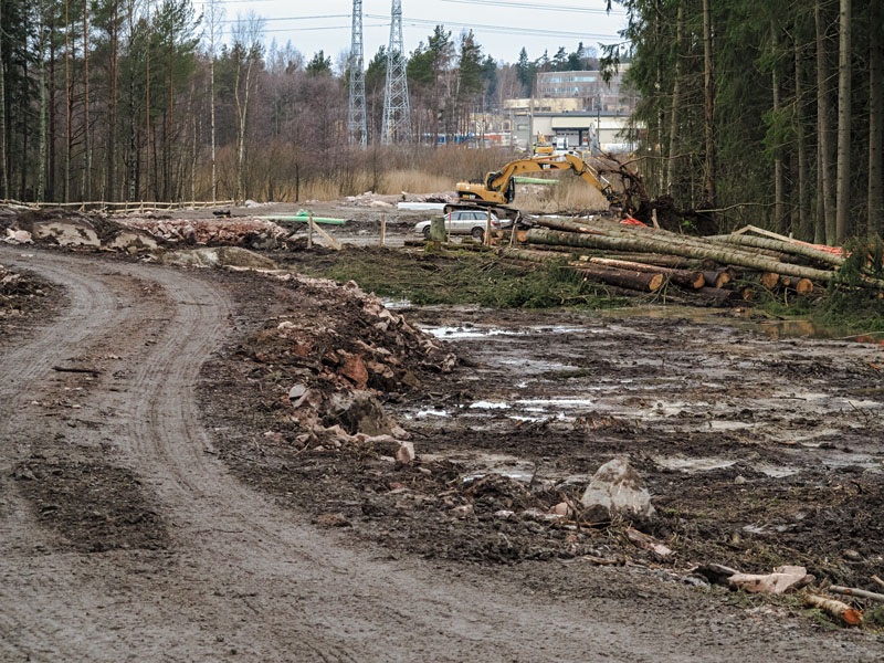 Marraskuussa se sitten alkoi. Suomenlahdentien rakentaminen. Metsää kaatui Tiistilästä ja Kaitaalta. Varikon edessä alkoi paaloitus.