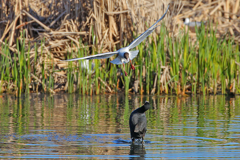 Länsialtaassa näin mielenkiintoisen naurulokkikerrospesiminen, kun oli kolme pesää lähellä toisia, mutta eri korkeuksissa ruovikkosaarekkeella.