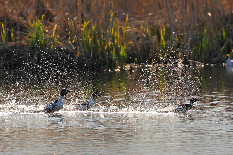 Komeat lapasorsa koiraat kilpailevat vielä naaraista ja niiden taka-ajot voidaan nähdä altaiden ympärillä.